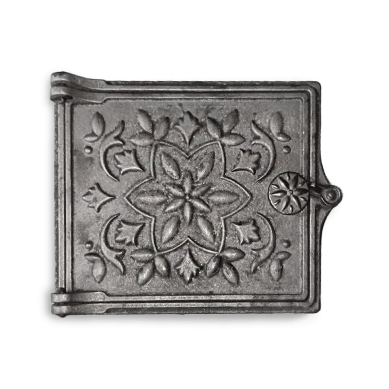 Изготавливается из серого чугуна марок СЧ10-СЧ15 ГОСТ 1412-85, соответствует РСТ РСФСР 678-82. Дверки оформлены симметричным рисунком, что позволяет устанавливать их как с открыванием влево, так и вправо, для этого достаточно перевернуть дверку и повернуть вертушок на 360 градусов. Вертушок расположен на внешней стороне рамки, поэтому он находится вне зоны действия огня.